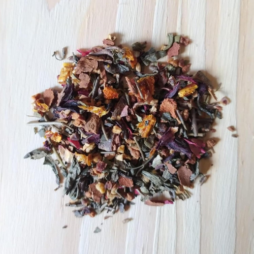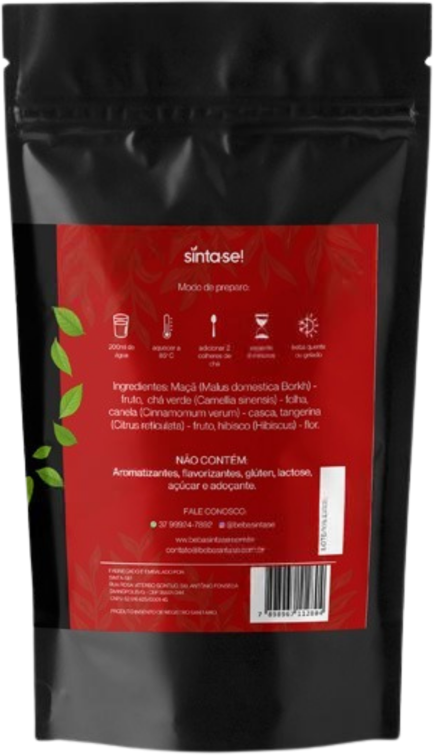 Chá verde (Camellia sinensis) – folha, maçã (Malus domestica Borkh) – fruto, canela (Cinnamomum verum) – casca, tangerina (Citrus reticulata) – fruto, hibisco (Hibiscus) – flor